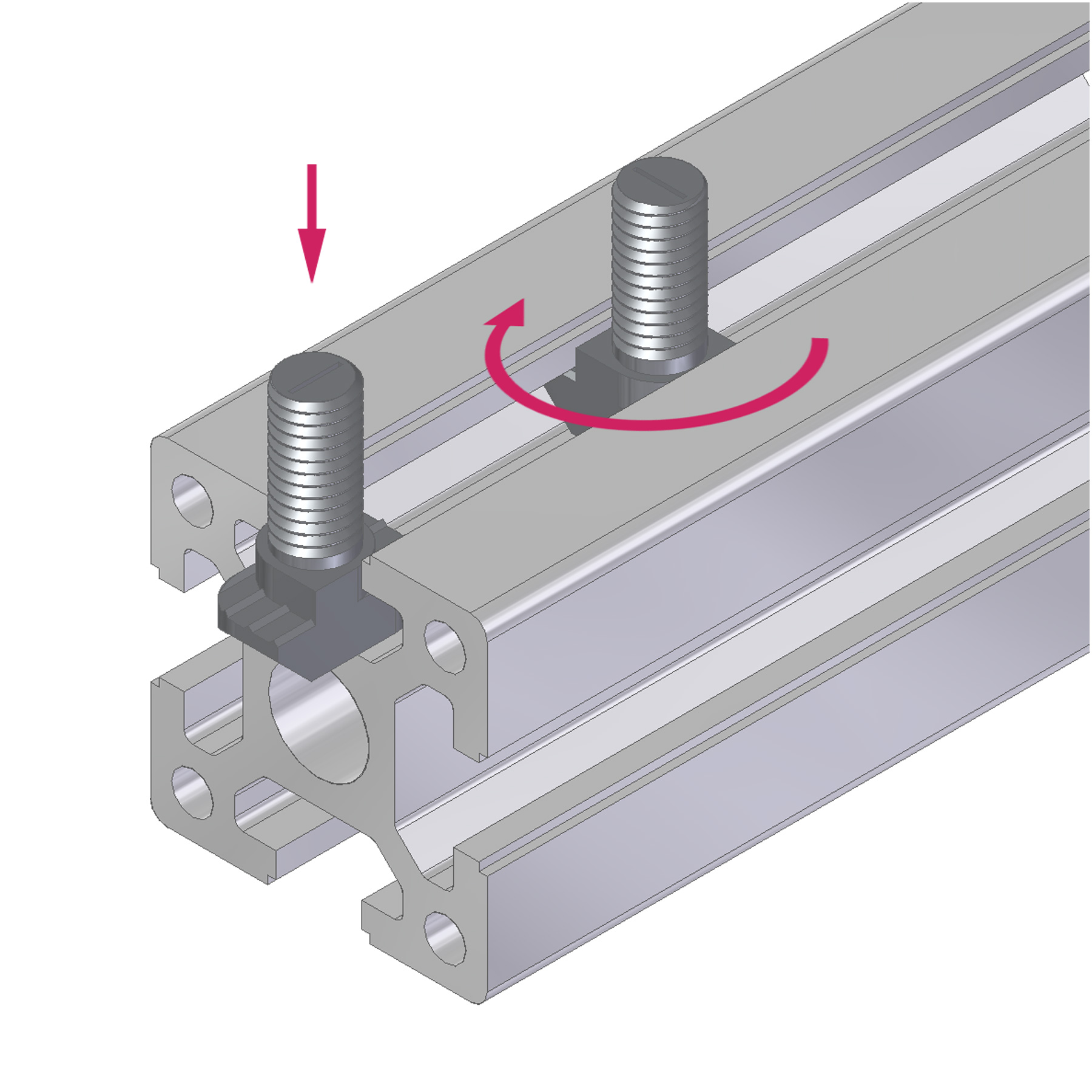 As the T nuts, T bolts allow their placement on the assembly position after the structure is complete. Material: nickel plated steel.