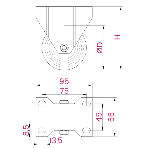 | Plate fixed castor Ø75 PU Rodízio fixo Ø75 PU |