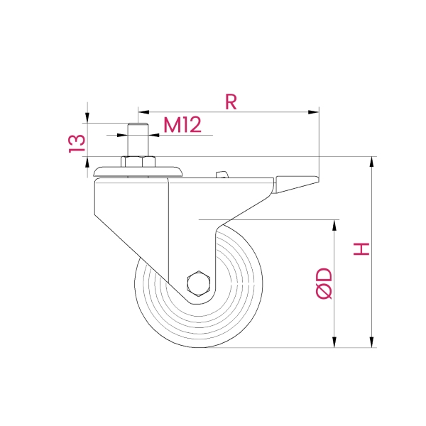 | Universal threaded castor w/ brake M12 Ø100 PU Rodízio perno roscado M12 c/ travão Ø100 PU |